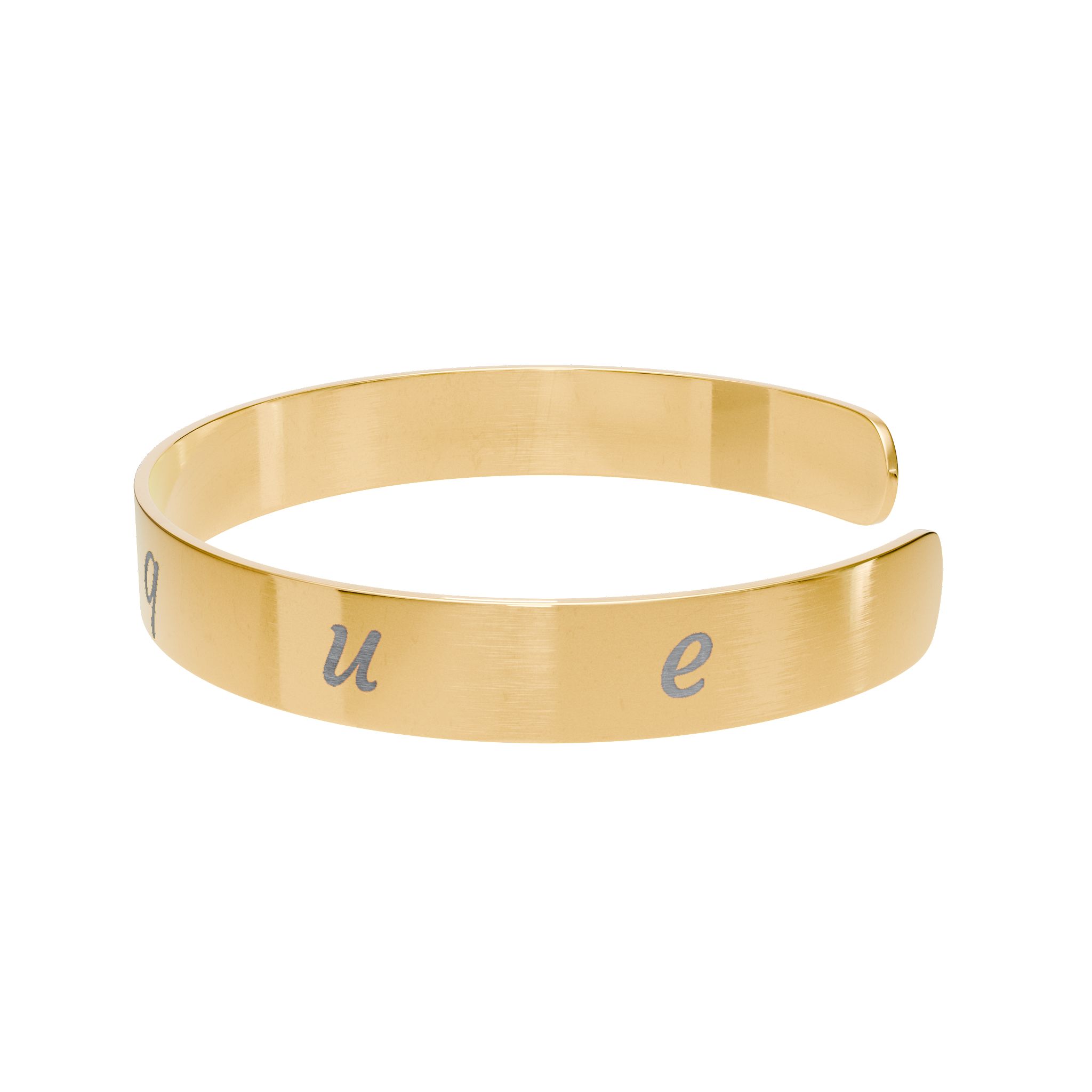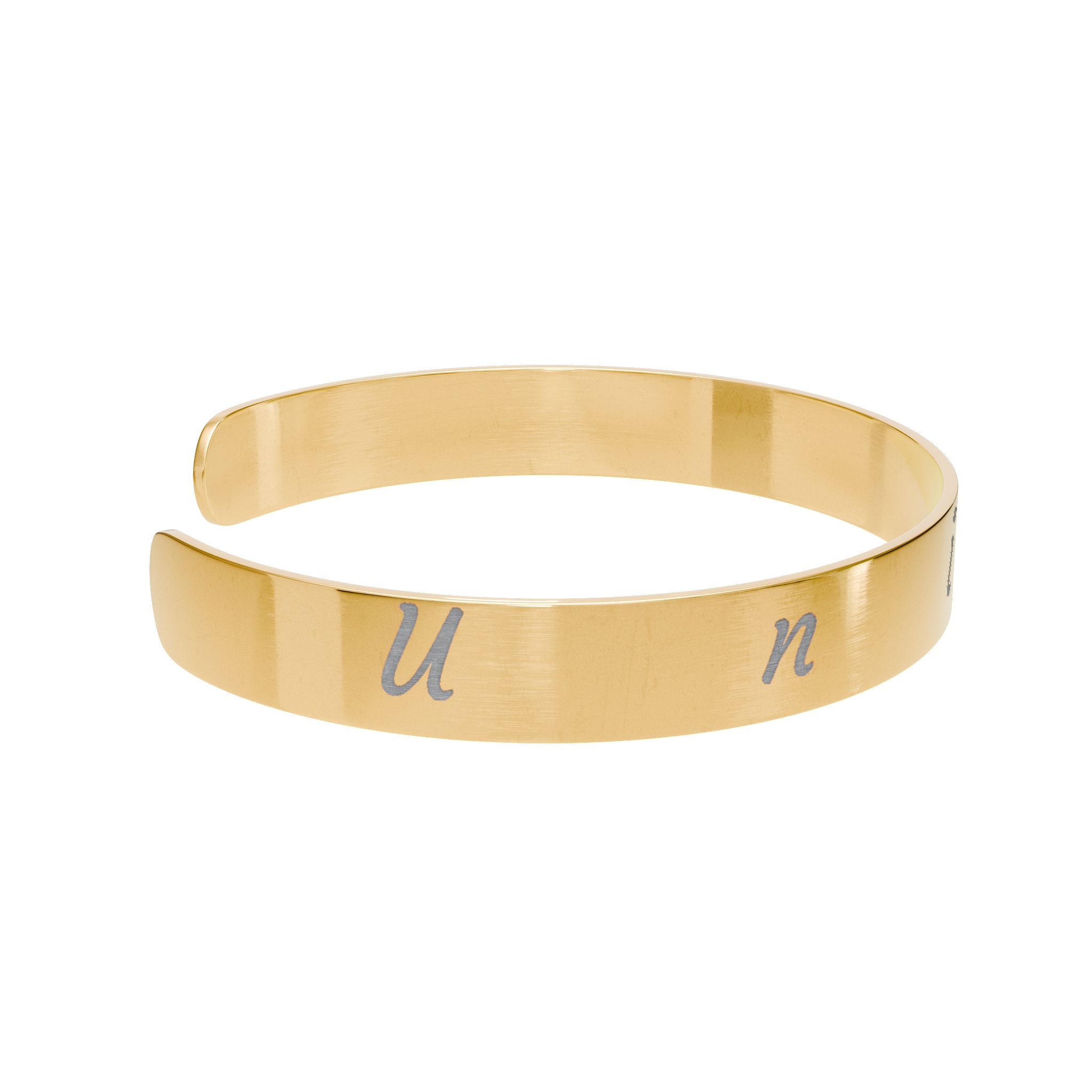– Engraved flat then formed for a smooth, ready-to-wear finish