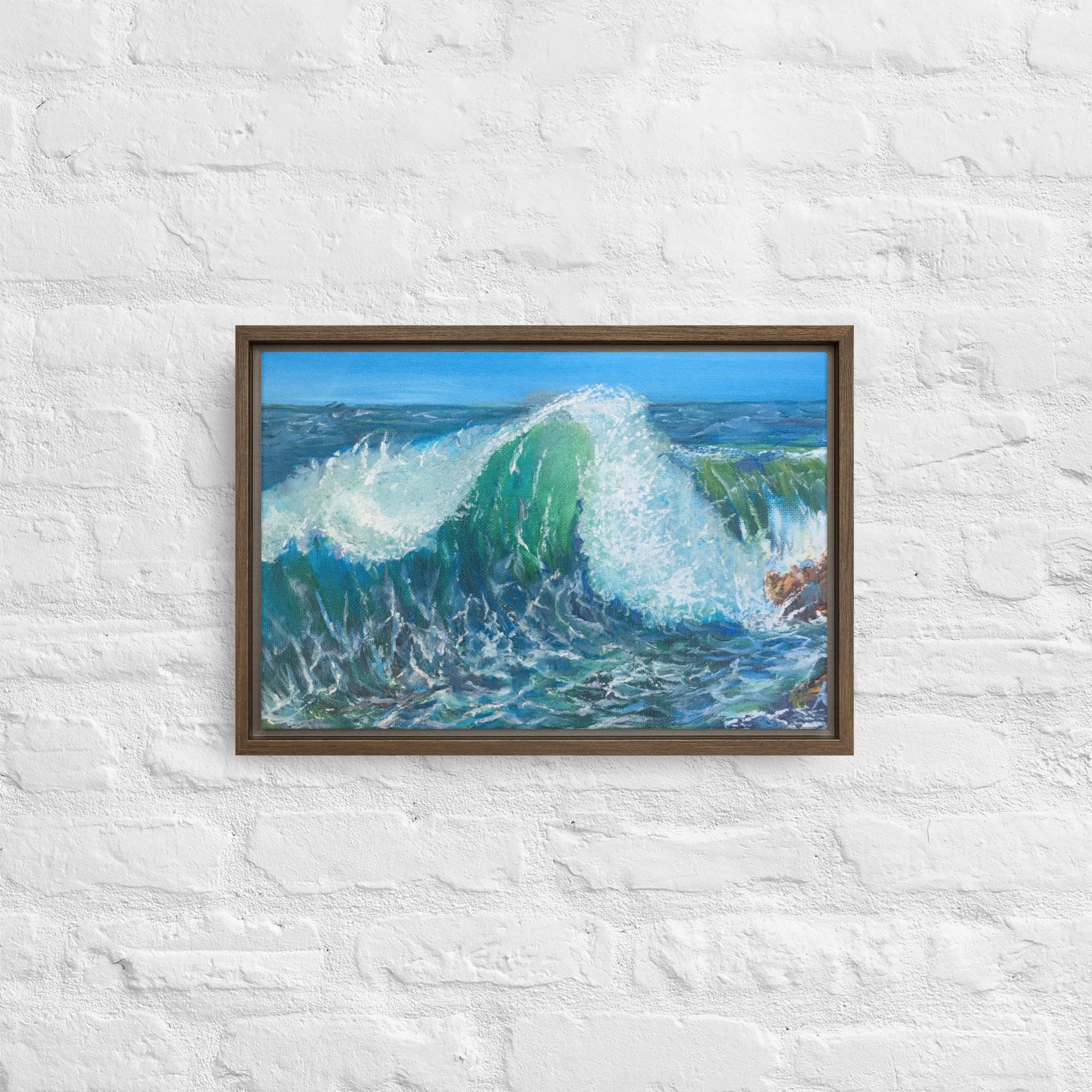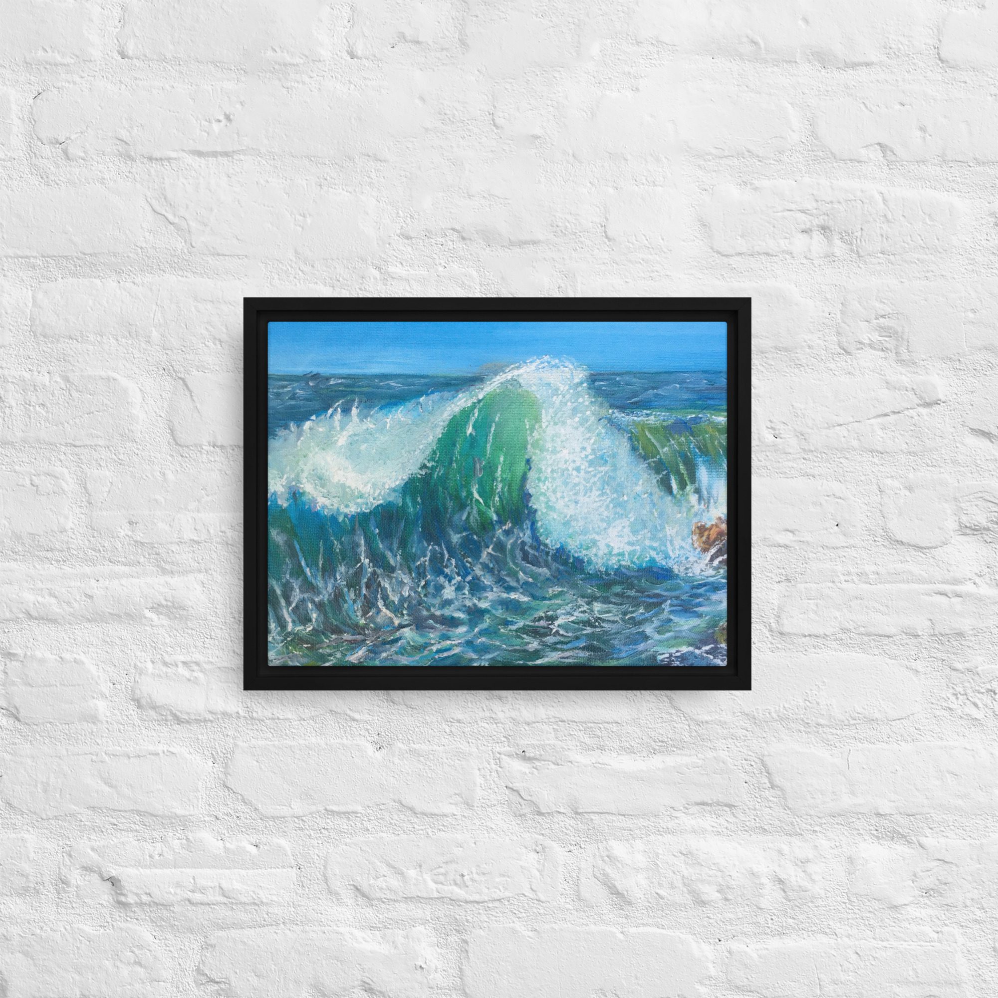 – The framed canvases with brown and black frames have a black inside around the canvas, and the canvases with white frames have a white inside around the canvas.